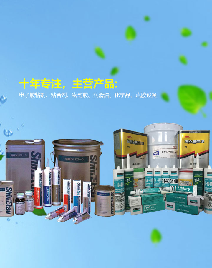 經過10年的發展,公司已成為優質的產品代理和膠粘解決方案的提供商,目前主要的代理產品有:美國道康寧系列,日本信越系列,東部化學系列,韓國樂泰系列等。公司產品廣泛應用的行業有:汽車、電子、光電、機電、電器、醫療、航空、通訊等行業電子元器件、零部件、模塊組件,為其提供線路板粘接、密封、灌封、披覆、潤滑、導熱、絕緣等全面的膠粘與潤滑解決方案。